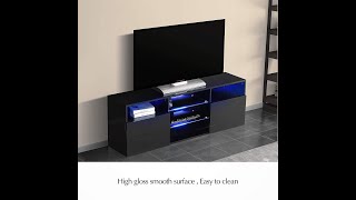 28. mecor black tv stand led tv stand- central entertainment features led lights system with remote on/off and color control